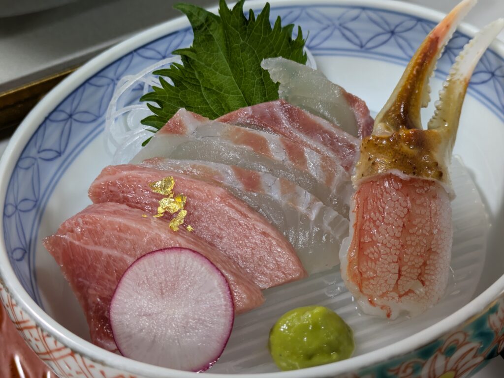 マグロ、タイ、生のカニと高級食材がどどんと