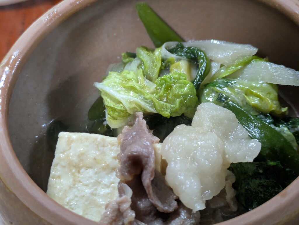 角屋さんのお鍋は白味噌ベースで京都人の我々の口によく合います